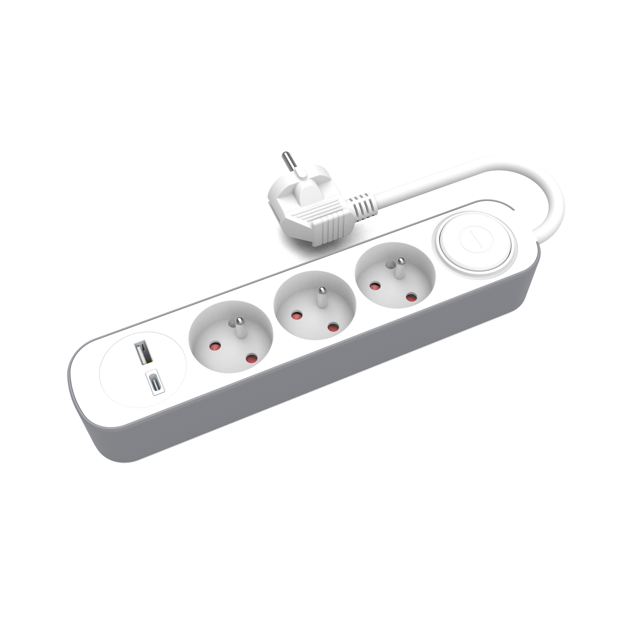 PS-370WS+USBA+USBC/1,5 E Przedłużacz stały z trzykrotnym gniazdem wtyczkowym i włącznikiem oraz gniazdami USB A, USB C, 1,5m